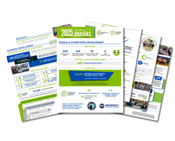 The Capital Region Chamber & Center for Economic Growth’s (CEG) 2025 Impact Report showcases the measurable progress we’ve made in strengthening our region’s economic vitality—from workforce development and entrepreneurial support to business growth, advocacy, and community impact. Behind every chart and milestone are the people who make it possible: the members we champion, the businesses we support, and the dedicated team whose collaboration, problem‑solving, and commitment uplift our entire community.